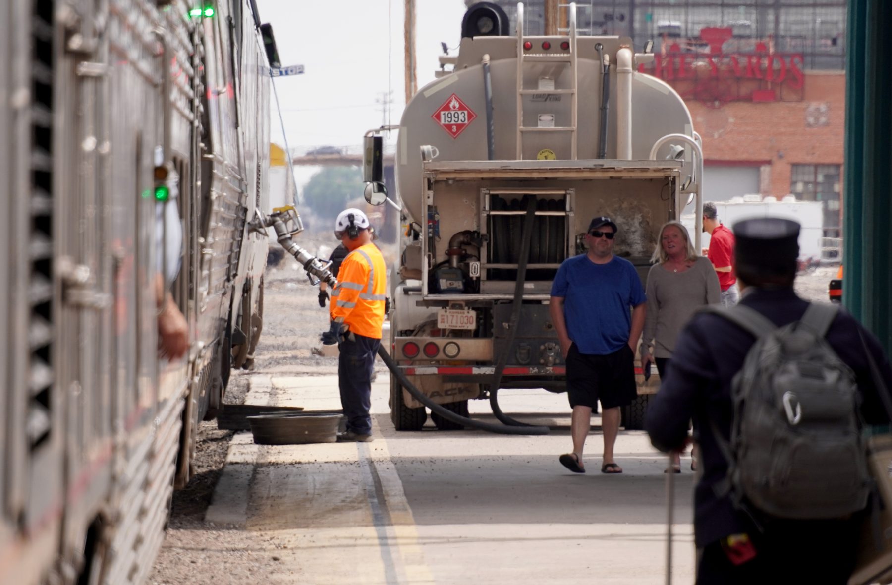 We spent 6 hours sitting still on the border between Arizona and California. There was a problem with the locomotive and we had to wait for a replacement. Fortunately, this all happened overnight, so we slept through it and didn’t have to bake in the desert sun. Also fortunately, we then got to see sunrise over the California desert.
