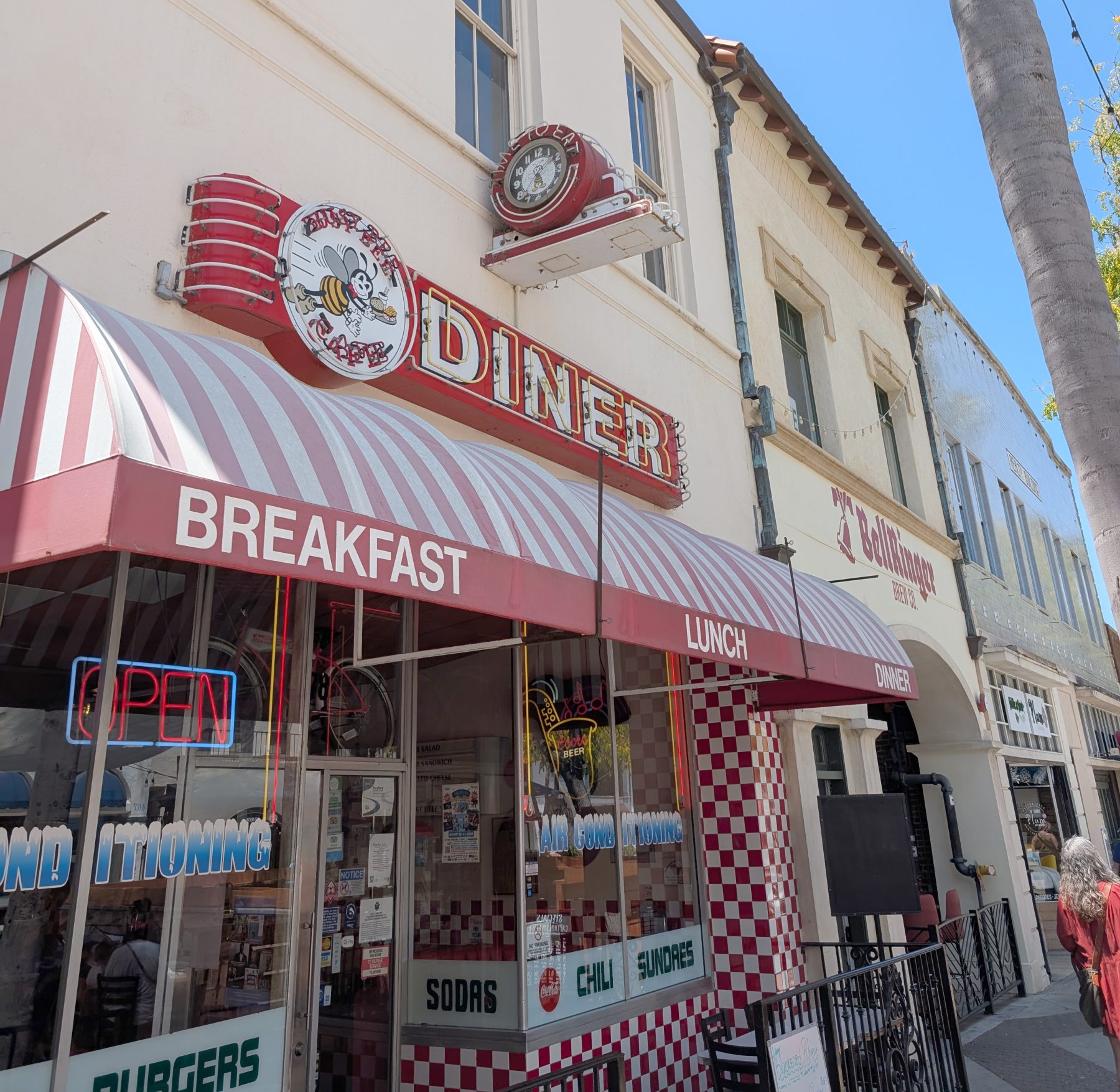 I took the Pacific Surfliner from Los Angeles to Ventura, CA at around 4 pm. We got stuck on a siding waiting for a broken-down freight train to get fixed and move on, and it was beginning to get dark by the time I arrived in Ventura.